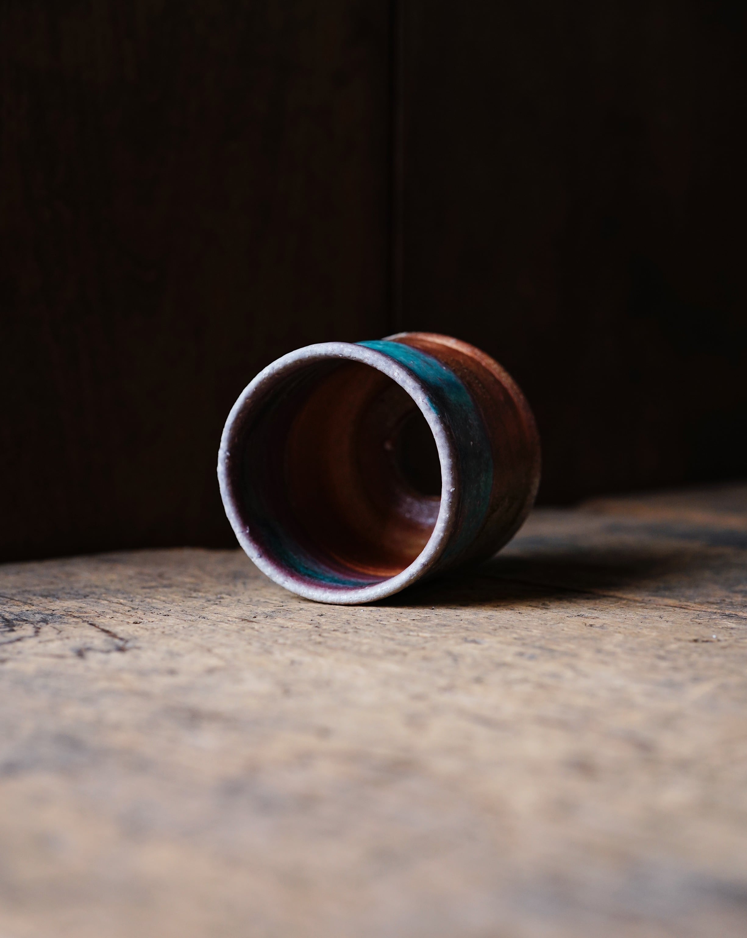 トルコ釉はそのままでも美しい青に発色するため、薪窯で焼成することでその特徴を奪ってしまうのではないかと思われるところですが、トルコ釉の上から更にさまざまな木々の灰が降りかかることで、人のコントロールを超えた美しさを見せてくれます。