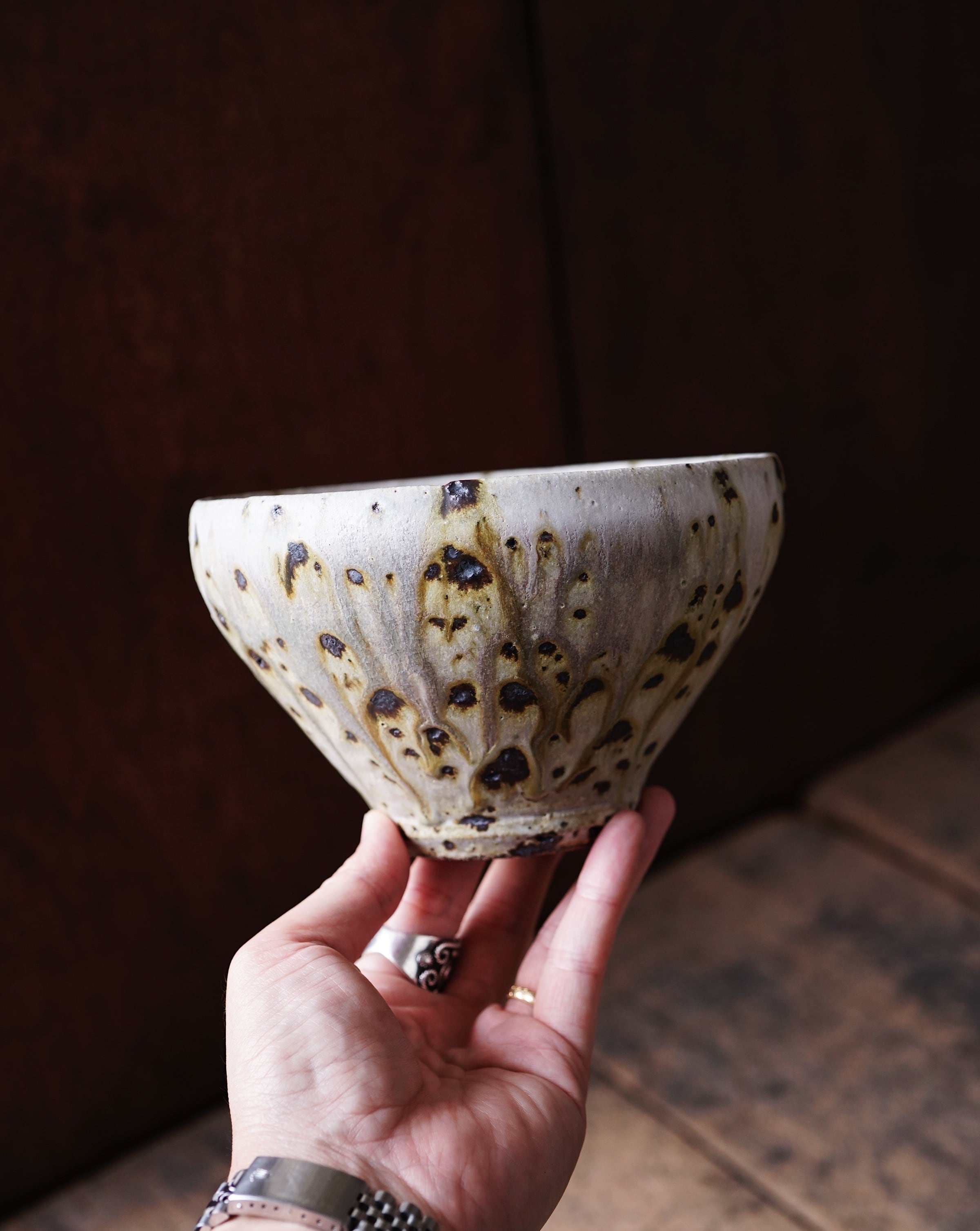 鉄飛びマット灰釉鉢