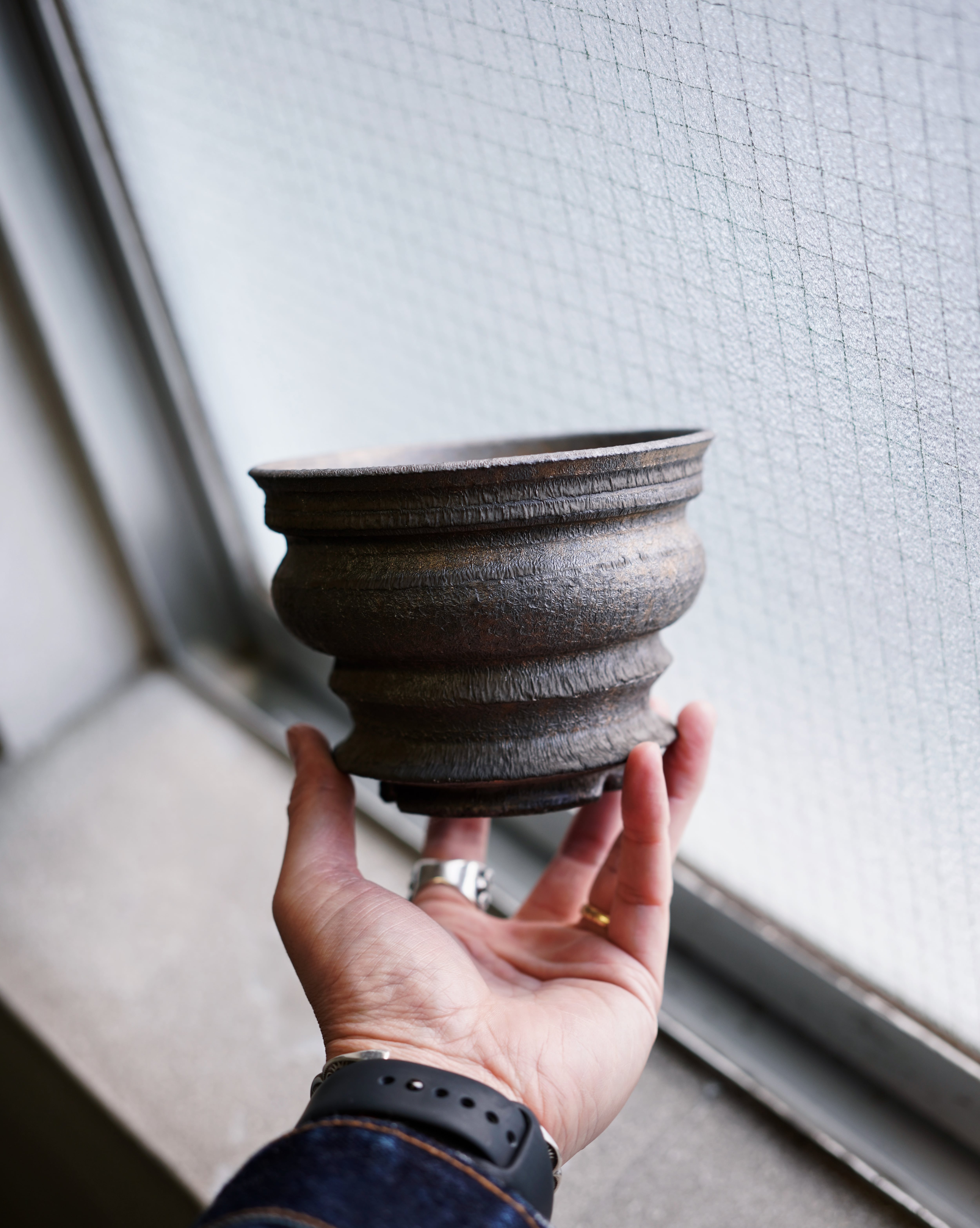 現在は元々は祖母の美容室であった店を工房として改良し、先祖が大切にされていた土地で焼締の器を中心に作陶されています。