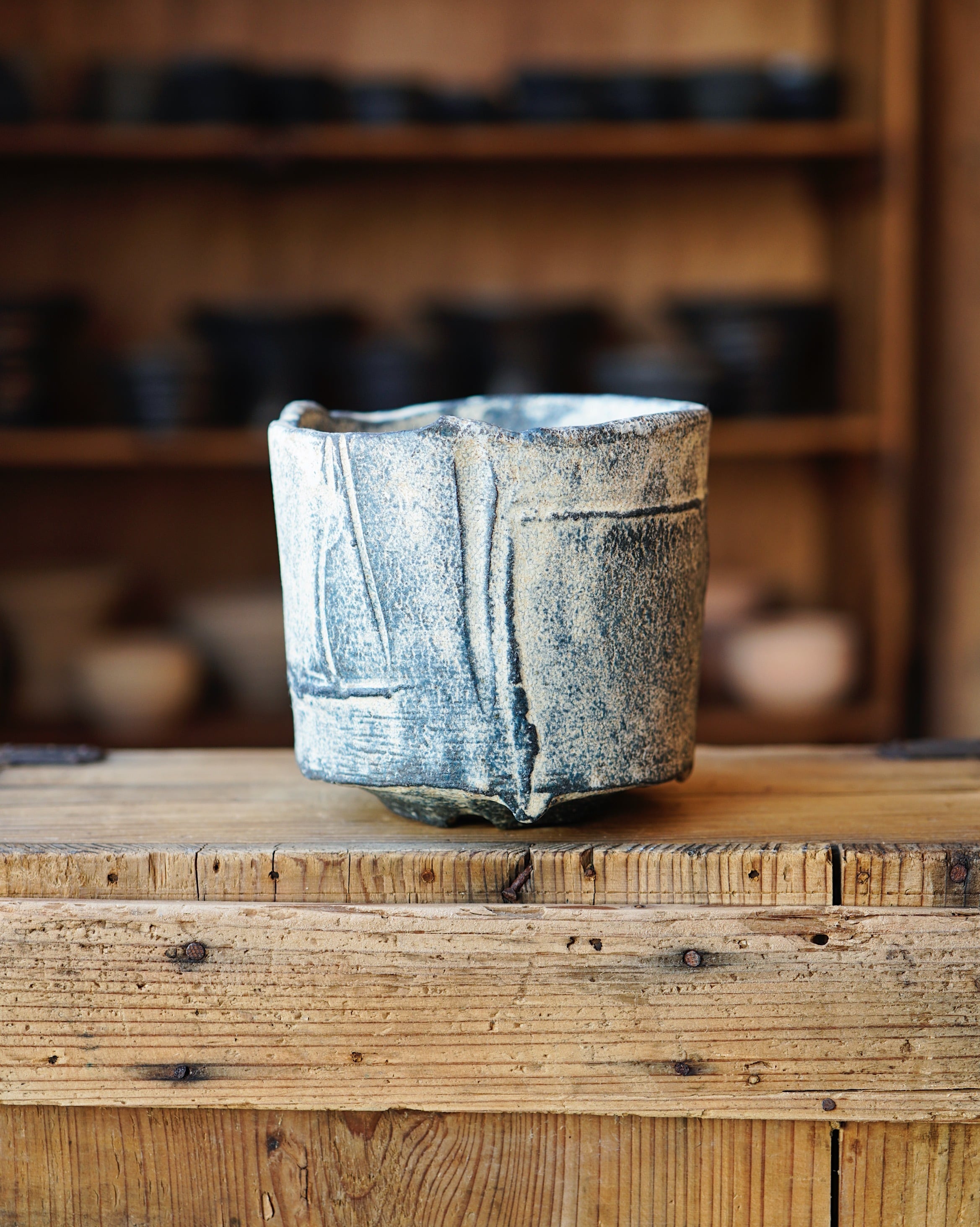 千田さんは手びねりを基本に、刳り貫きや貼り付けなど多彩な技法で形作り、泥漿にて表情をつけています。