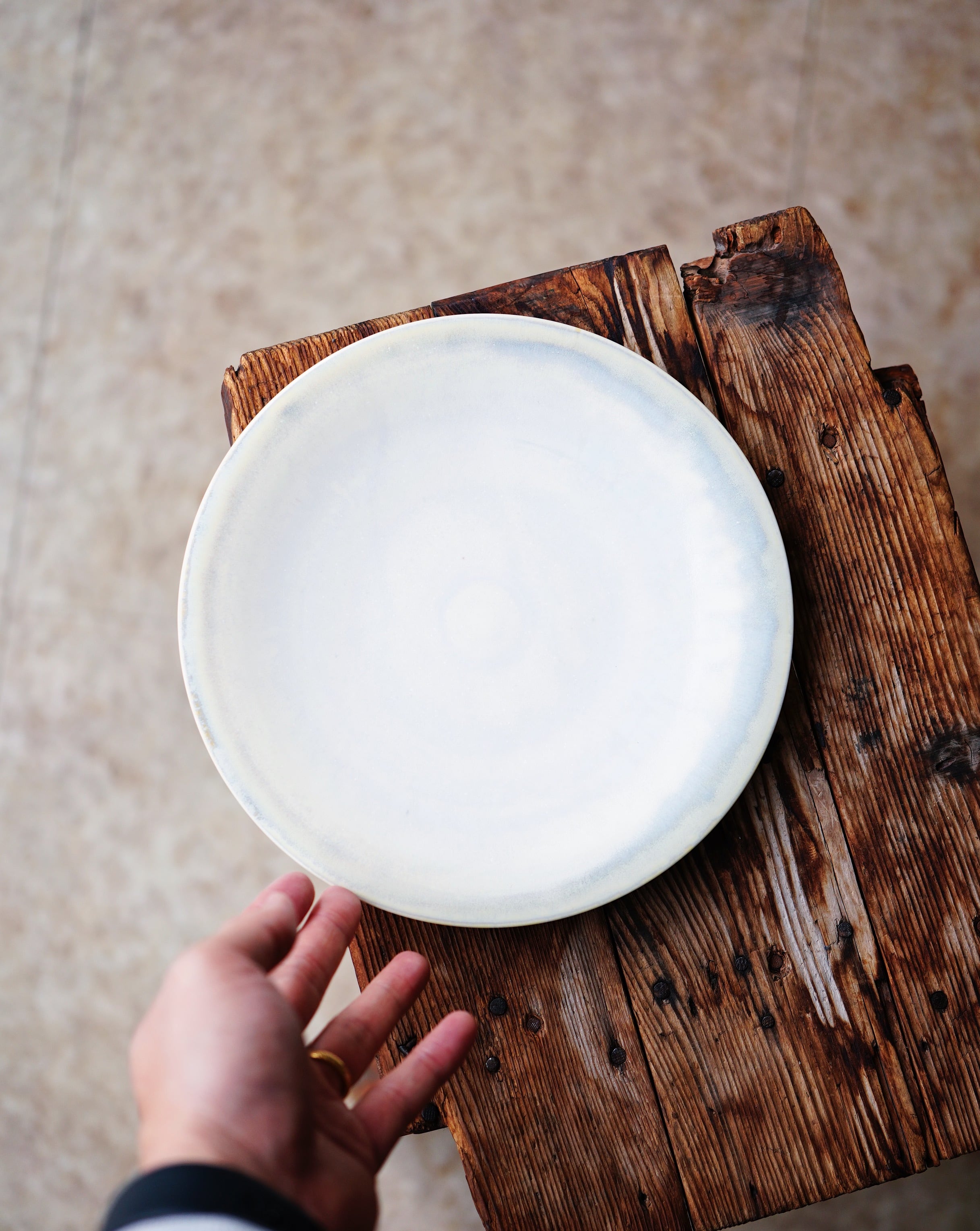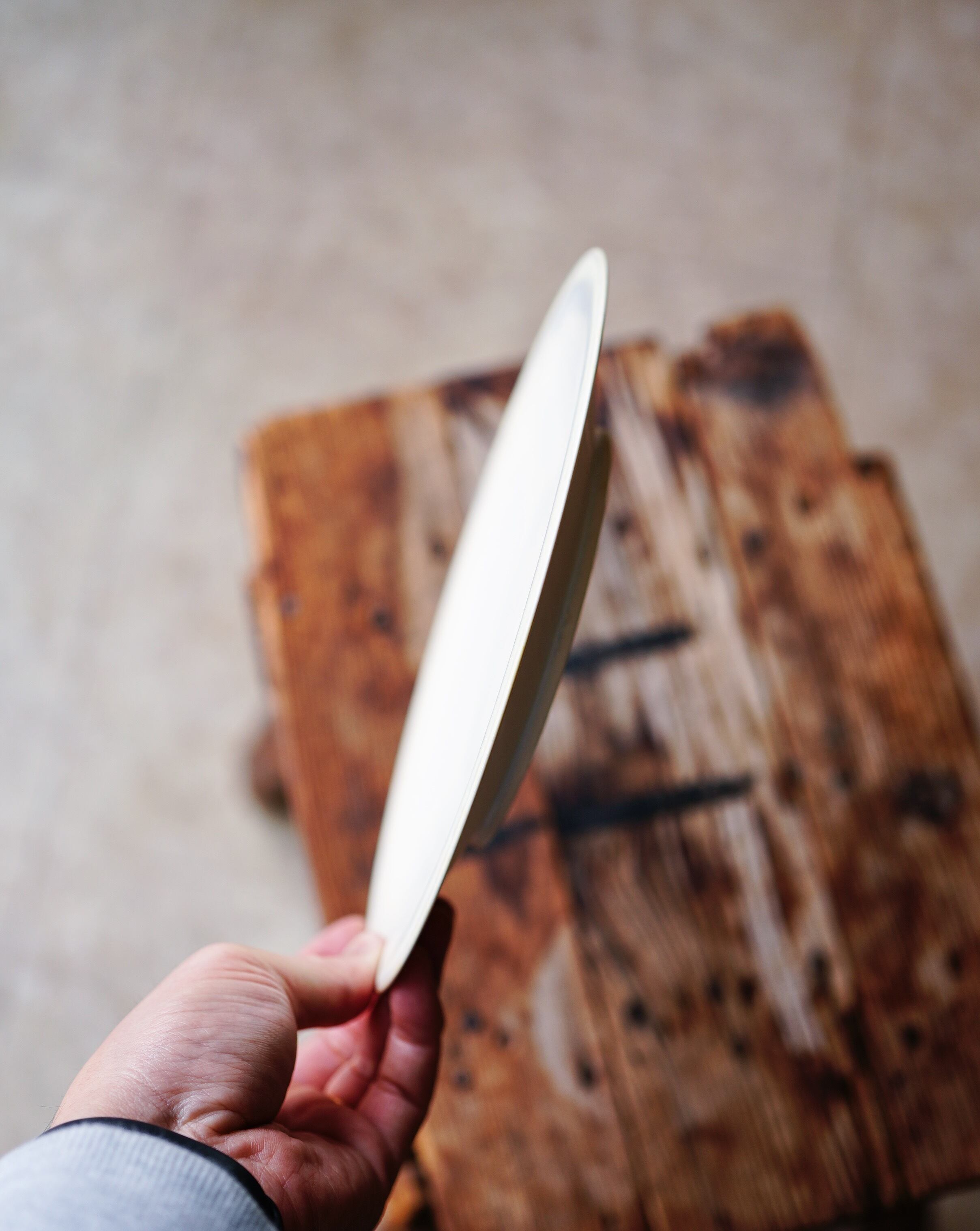 薄く引かれた器は料理を盛っても手に持つのに苦にならない軽さですが、磁器土で作られていることから強度も高く安心感があります。